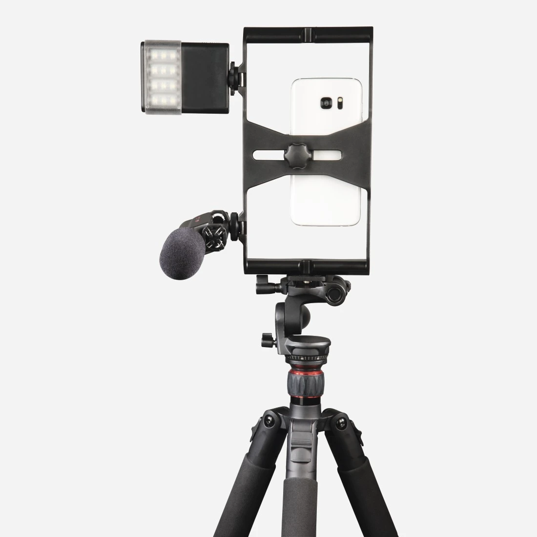 Veelzijdige handgreep voor stabiel hanteren van smartphone bij filmen
