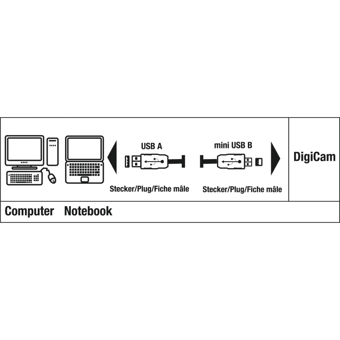 Met deze 2.0 USB-kabel/ MiniB kan je foto's van een digitaal fototoestel met een B8-uitgang (Pentax, Nikon, Konica, Minolta, Panasonic...) overzetten naar een computer met USB-poort.