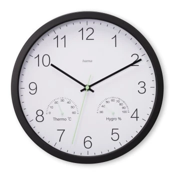 Hama Wandklok "Malta", Ø 25 cm, met thermo- / hygrometer, tikt niet, zwart
